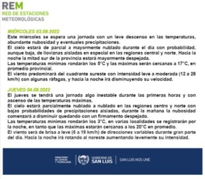 HomeClimaMitad de semana con un leve descenso de la temperatura Clima Mitad de semana con un leve descenso de la temperatura Por Redacción 3 agosto, 2022 TagsPortada Previous articleCon respaldo del kirchnerismo y expectativa por ser la última carta del Gobierno, arranca la era Massa en EconomíaNext articleEl Gobierno de Neuquén echó al sindicalista que le disparó a un reportero gráfico en San Martín de los Andes Noticias Relacionadas Clima La semana comienza con mañanas frías y chance de heladas en varias localidades 6 octubre, 2025 Clima La semana termina con temperaturas de verano y pronóstico de un fin de semana inestable 3 octubre, 2025 Clima Octubre comienza con abundante nubosidad y temperaturas agradables 1 octubre, 2025 mas leido Un camión volcó en la ruta 147: el conductor resultó ileso 10 octubre, 2025 El Carrillo recibió un certificado de la OPS por su labor en vigilancia de infecciones respiratorias 10 octubre, 2025 San Luis: prisión preventiva para un joven acusado de incendiar una vivienda y amenazar a vecinos 10 octubre, 2025 El ministerio de Salud impulsa acciones en toda la provincia para la prevención del cáncer de mama 10 octubre, 2025 Load more