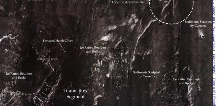 La compañía que posee los derechos de salvamento exclusivos del naufragio del Titanic y los artefactos del barco presentó ante un tribunal federal el sábado un mapa del lecho marino circundante que muestra dónde los buscadores encontraron los restos retorcidos del sumergible Titán.