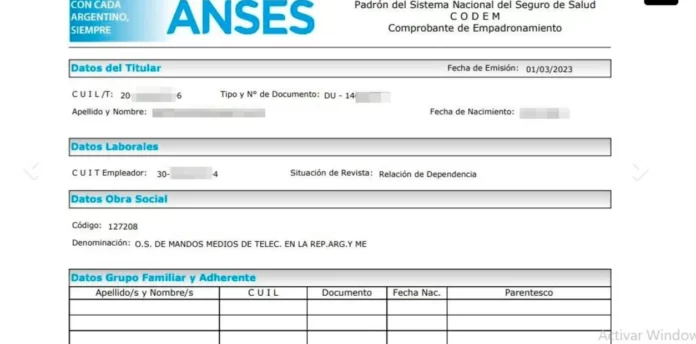 La base de datos en cuestión es el Padrón del Sistema Nacional del Seguro de Salud de la ANSES.