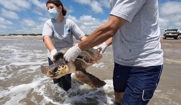Tres tortugas cabezonas fueron devueltas al mar en las playas de la localidad balnearia de San Clemente, tras haber sido rescatadas en aguas de la Bahía de Samborombón, luego de quedar atrapadas en redes de pesca, según informó hoy la Fundación Mundo Marino.