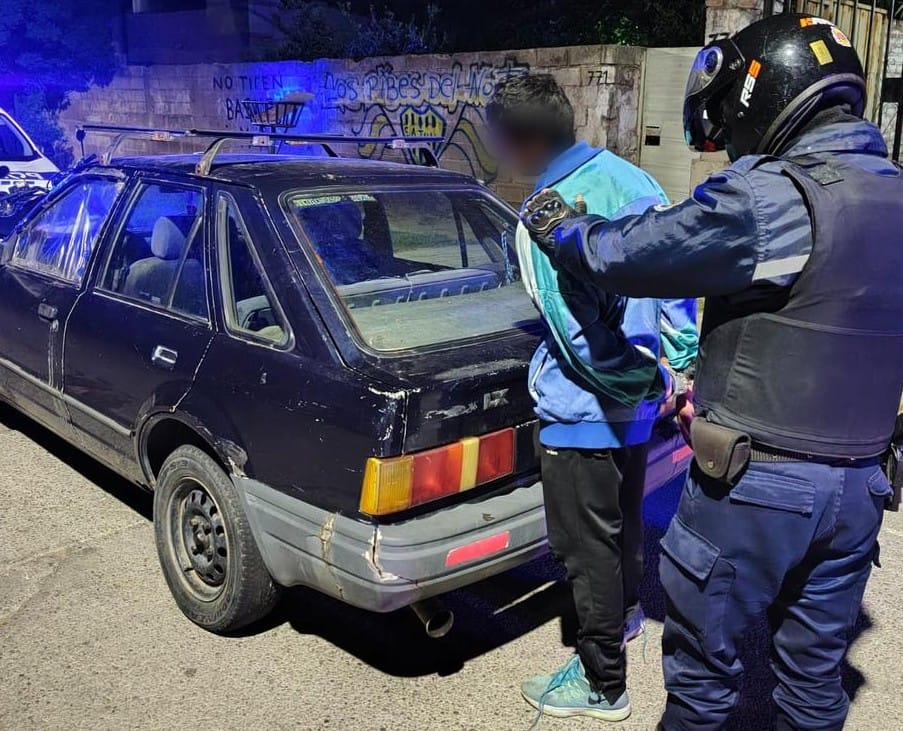 Mientras realizaban recorridos por inmediaciones de las calles Fernando Prado y Villa Elena, los motoristas fueron alertados por un vecino que les manifestó que había observado a un individuo (el joven de 27 años) empujando un automóvil Ford Escort de manera sospechosa por calle Cortaderas.