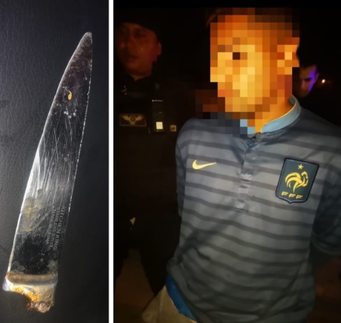El personal policial identificó al joven, que tiene 20 años de edad. Al realizarle un palpado superficial, entre sus prendas tenía un arma blanca tipo “punta”