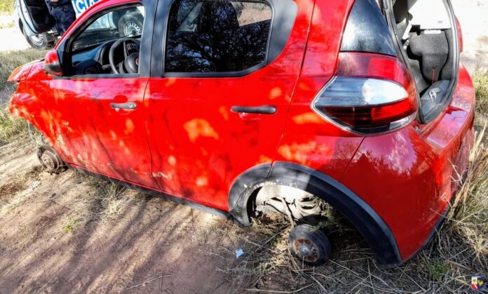 Los policías constataron que el automóvil no tenía las ruedas, ópticas delanteras, batería, guardabarros y paragolpe delantero. Además, las dos placas de identificación se encontraban dentro del baúl.