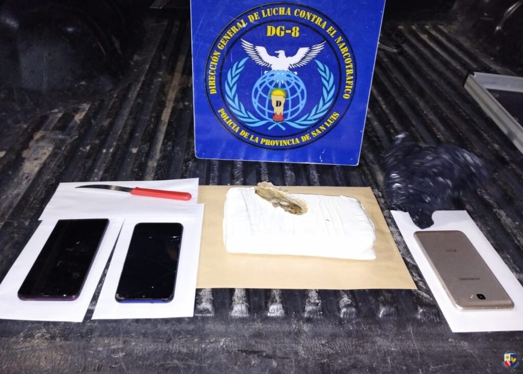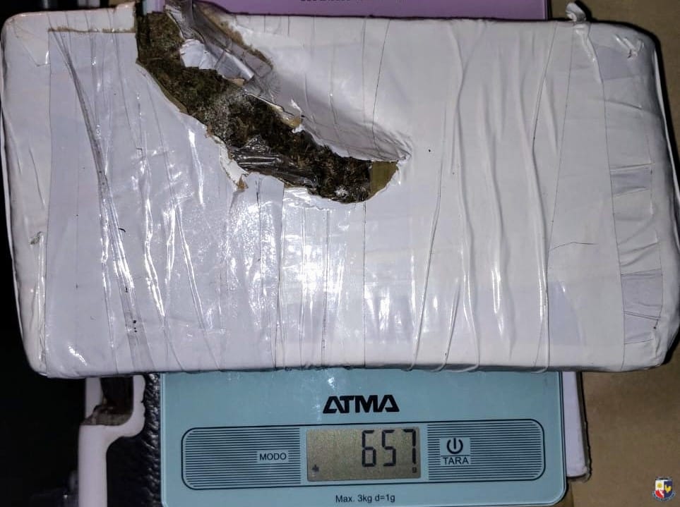 Tras identificar a los sujetos, los policías incautaron y secuestraron un paquete de forma prismática (ladrillo) de marihuana compactada, la que arrojó un pesaje de 657 gramos, suficiente para la elaboración de 1.900 dosis, valuadas en $6.800.000 aproximadamente; tres teléfonos celulares, un recorte de nylon y un cuchillo.