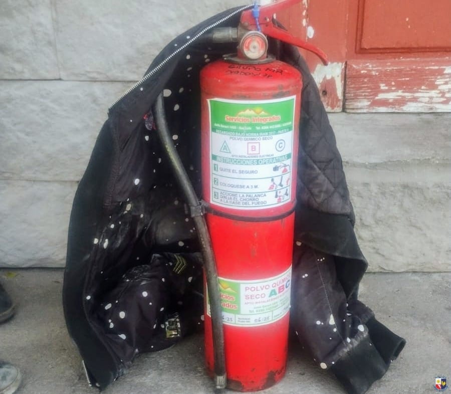 Al advertir la presencia policial, el individuo arrojó en el lugar un matafuego que llevaba con él e intentó darse a la fuga.