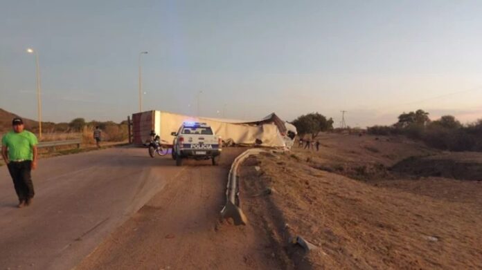 El siniestro ocurrió este lunes por la tarde, alrededor de las 19, un camión de origen brasilero volcó en la Autopista de las Serranías Puntana en el kilómetro 784 (carril este oeste)-, pasando Terrazas del Portezuelo, a la altura del barrio 544 Viviendas, de la ciudad de San Luis.