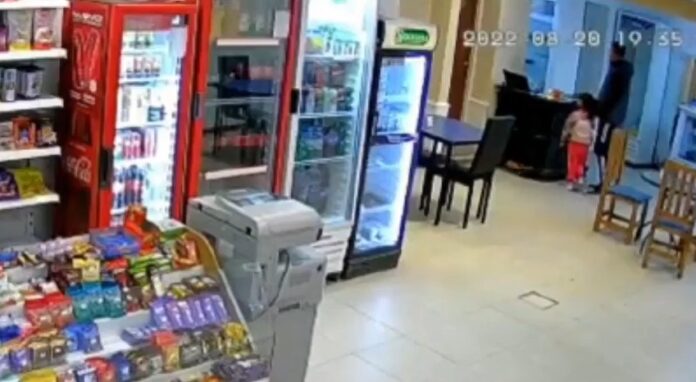 En el video se puede observar como el hombre, en compañía de su hija, roba el teléfono del mostrador.