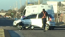 Por razones que se tratan de establecer, un auto y una moto protagonizaron el accidente de tránsito.