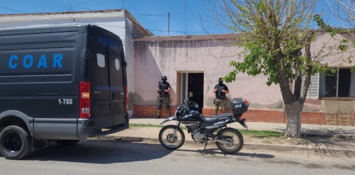 Las medidas judiciales se llevaron a cabo en cinco viviendas situadas en camino Bajo Véliz y Ruta Provincial N° 5, en calles Santa Rosa, Paraná, Dorrego y Garis, de la citada localidad.