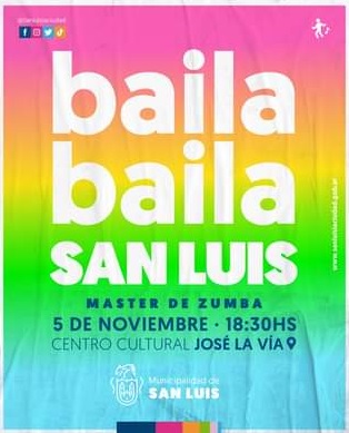 Este fin de semana, los fanáticos del baile y la actividad física podrán encontrarse y disfrutar de Baila, baila San Luis. Este máster de Zumba se desarrollará el sábado 5 de noviembre, desde las 18.30 horas en el Centro Cultural José La Vía.