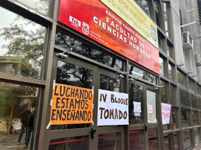 En el marco de los reclamos salariales y la financiación del sistema universitario, a través de la Asamblea Interclaustro, docentes, no docentes y estudiantes decidieron tomar el Bloque 4 de la Universidad Nacional de San Luis (UNSL).