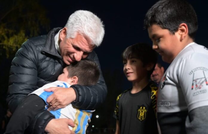 Tras dar un paseo bordeando la cancha desde el sector peatonal, el Gobernador se encontró con los pequeños del Club, quienes aprovecharon para charlar y chocar los cinco con el Mandatario.