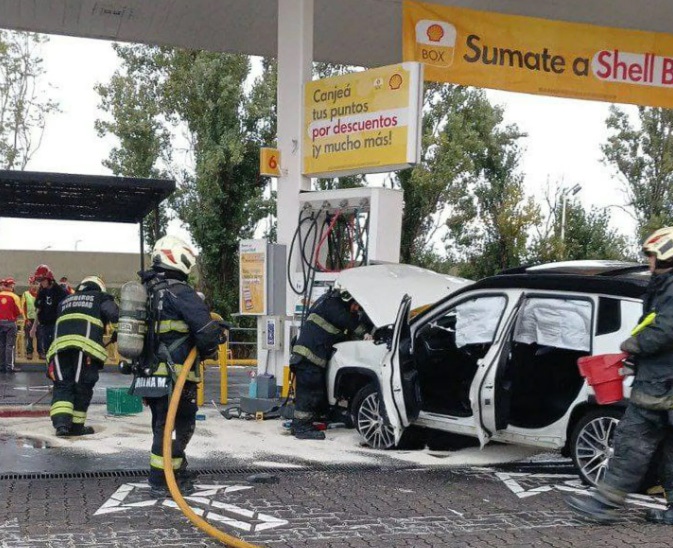 Personal de Bomberos de la Ciudad trabajó en el lugar para evitar un posible incendio del vehículo de Palacios, lo cual hubiera implicado un riesgo sumamente mayor al tratarse de una estación de servicio.