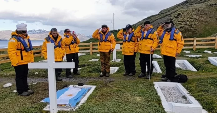 Finalmente ayer domingo fue la visita a la tumba. Luego de desembarcar, pasaron por la planicie de Salisbury y de ahí a Gritviken y su cementerio, donde también está enterrado el explorador irlandés Ernest Shackleton.