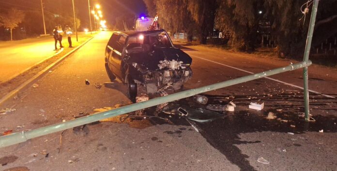 HomePolicialesUn auto chocó contra un poste de luz en Ruta 3