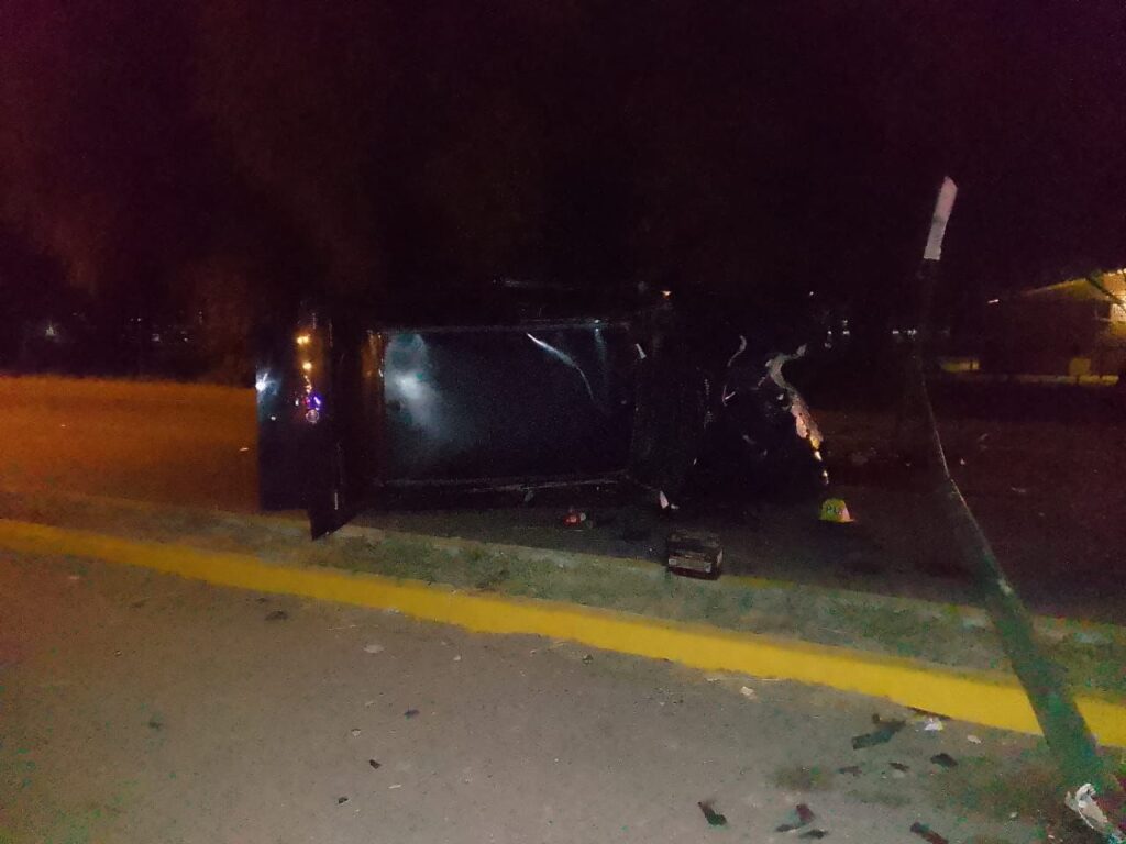 Un Fiat Uno que circulaba de sentido norte a sur perdió el control, subió al cantero central, chocó contra una luminaria y termino volcando.