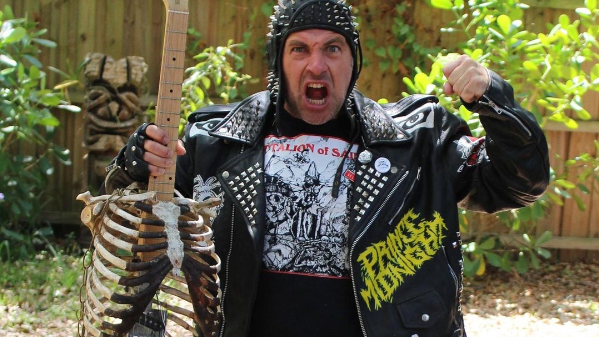 Un aficionado al heavy metal estadounidense compartió un video en YouTube en el que aparece tocando una guitarra eléctrica que él mismo construyó utilizando los restos óseos de su tío.