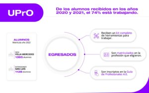 Es el porcentaje de los alumnos recibidos en los años 2020 y 2021 que ya están trabajando. Así lo aseguran los datos obtenidos por la Secretaría de Extensión y Vinculación de la casa de estudios. Desde que nació la Universidad Provincial de Oficios “Eva Perón” (UPrO), 7400 estudiantes recibieron su diploma. Así, se posiciona como la institución educativa más importante de Latinoamérica en su especialidad. El principal objetivo es incluir a las personas y vincular la educación con el trabajo.