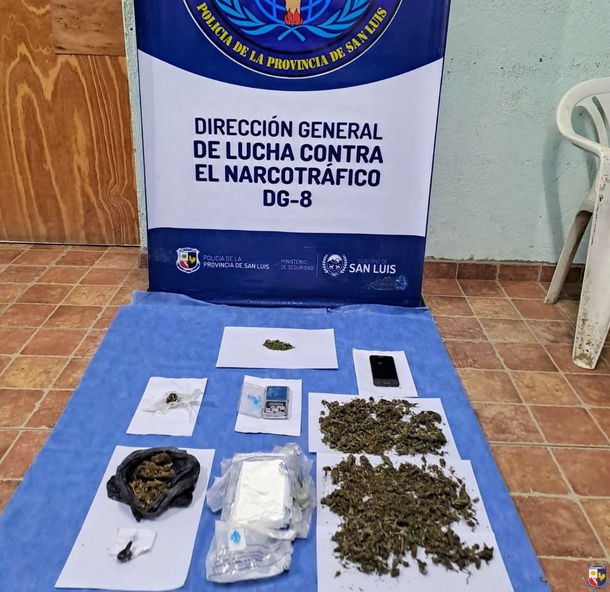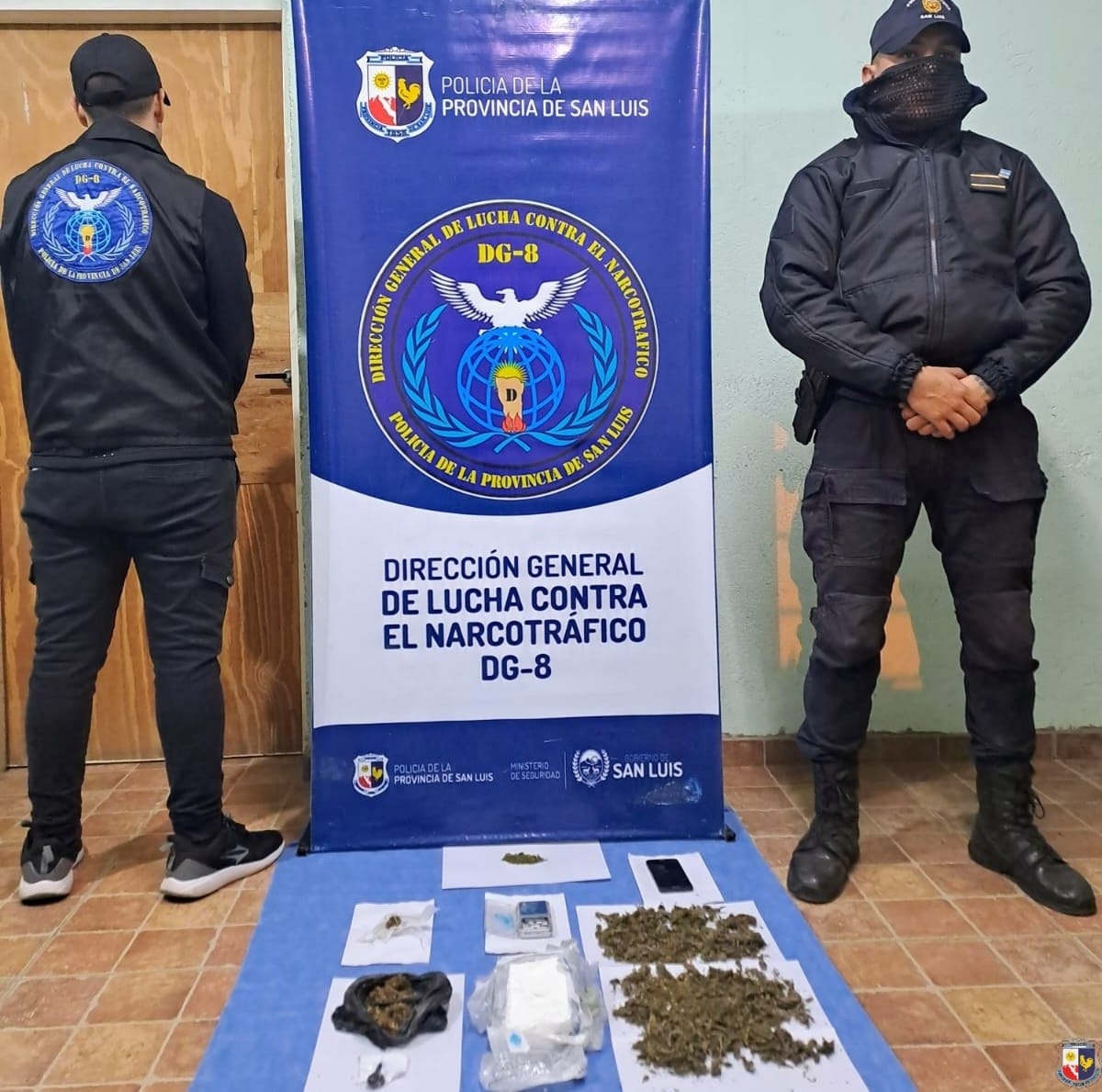 Este miércoles, efectivos de la Dirección General de Lucha Contra el Narcotráfico llevaron a cabo un procedimiento en la ciudad de Villa Mercedes, donde incautaron una gran cantidad de droga y detuvieron a un joven por el hecho.