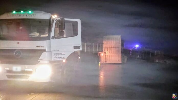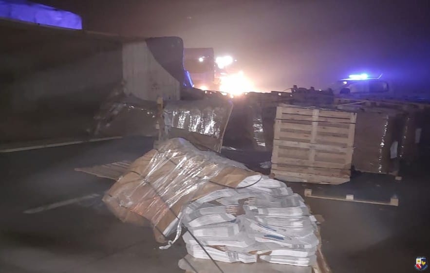 En ese sector, un hombre de 56 años, oriundo de la localidad de Villa Nueva, provincia de Córdoba, perdió el control de un camión Mercedes Benz Axor 1933 que transportaba bolsas de papel, lo que produjo el vuelco del acoplado con la carga.