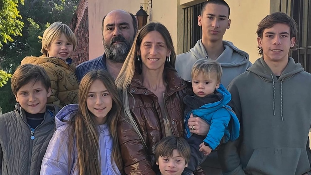 Los nombres de sus hijos varones responden a una tradición curiosa: todos empiezan con “B” larga. Benito (16), Bernardo (14), Belisario (10), Benancio (8), Beltrán (4) y Benjamín (2). Entre ellos, Benancio nació con síndrome de Down, lo que dio un matiz especial a la experiencia. “No lo vimos en la ecografía ni nos lo dijeron al nacer. Recién a los diez días nos confirmaron el diagnóstico con un estudio genético. Fue un shock, pero enseguida lo aceptamos con amor. Hoy es un chico feliz, que disfruta del campo y se estimula con la vida entre caballos, huerta y hermanos”, relató.